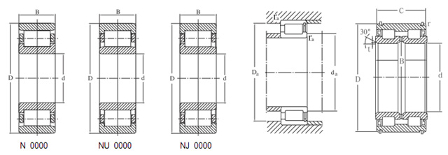 TWB SL04系列雙列滿滾子圓柱滾子軸承、具有較高的徑向承載能力和抗沖擊能力,而且可承受雙向軸向載荷,主要用于滾輪的支承。 該系列軸承具有一個外圈、兩個內圈,裝配后由內部鎖止結構保持軸承成一整體。軸承外圈寬度比兩內圈總寬度小1mm,外圈裝有止動環(huán),兩內圈結合處有油孔和油槽,從而簡化了應用部位的設計。 軸承兩側裝有鋼板沖壓密封圈(也可選接觸式橡膠或尼龍密封圈)。軸承零件表面可磷化處理,以保證軸承適應露天環(huán)境的應用。